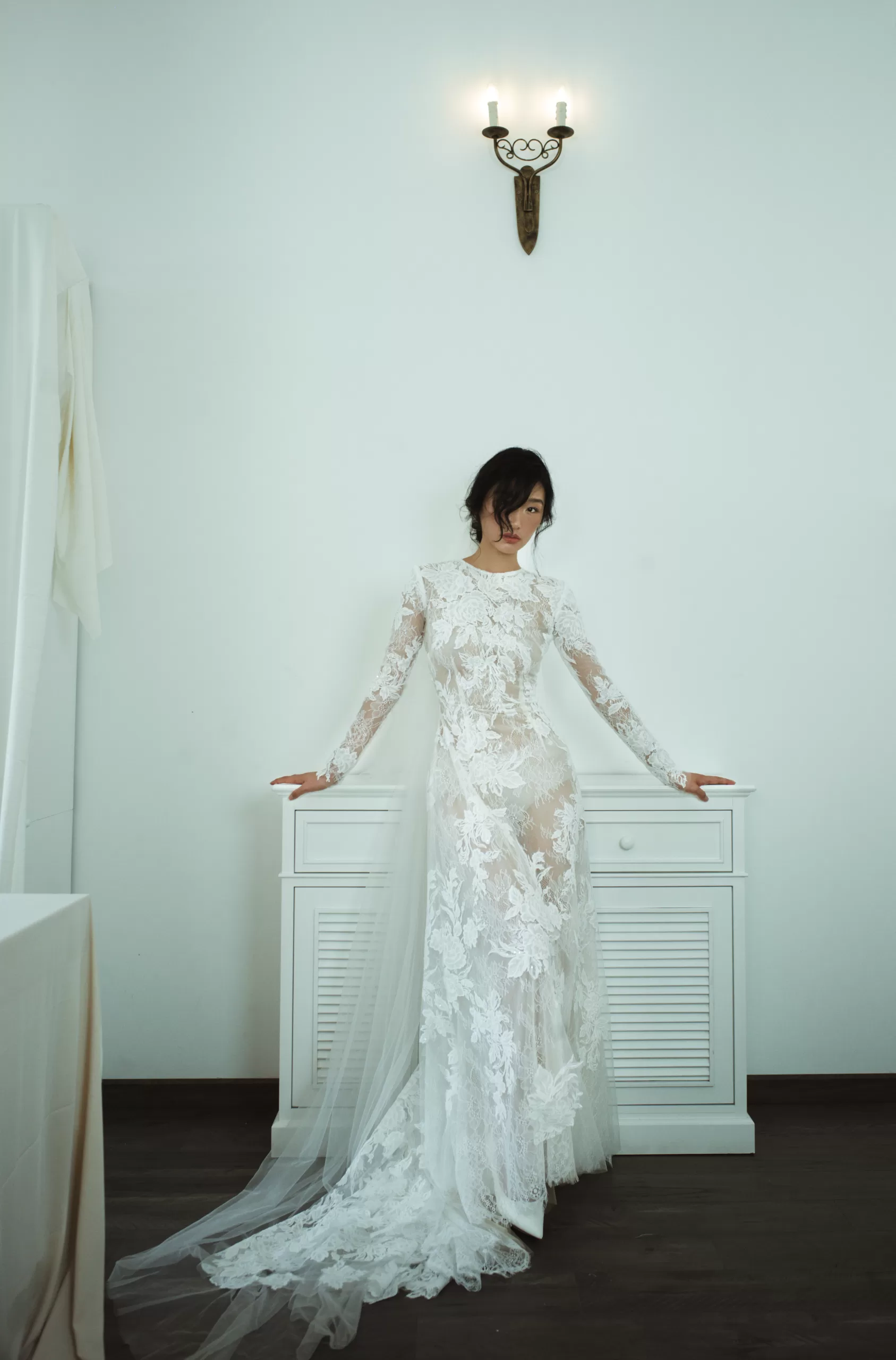 Chiếc váy cưới làm từ chất liệu ren xuyên thấu, mang đến vẻ đẹp vừa quyến rũ vừa