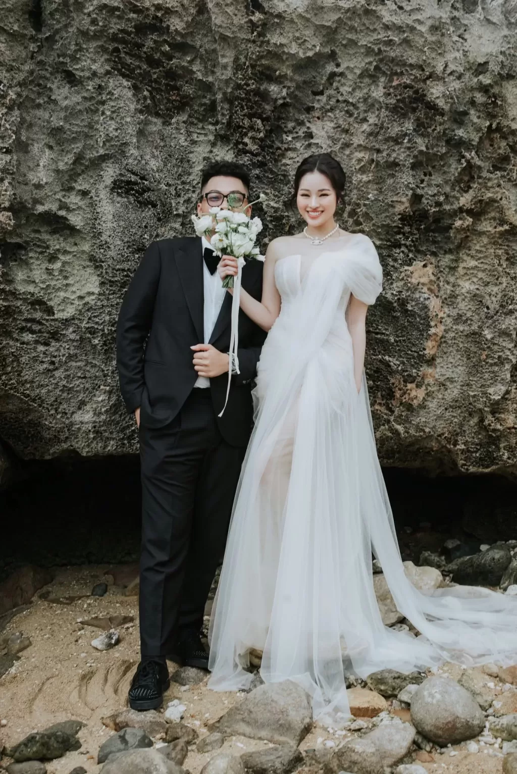 nữ tính. Thiết kế lệch vai độc đáo giúp cô dâu thêm phần gợi cảm nhưng vẫn giữ được nét
